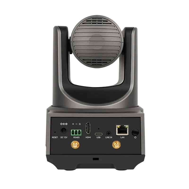 Eine professionelle Live Streaming Kamera mit mehreren Video Ausgängen und wireless Übertragung durch zwei an der Rückseite befindliche 2×2 MIMO Beamforming WLAN Antennen. Die Kamera eigenet sich für Stativ Montage, Wand- und Deckenmontage und alle anderen Montagearten unterhalb oder auf einem Bildschirm. Optional können auch andere Antennen verwendet werden